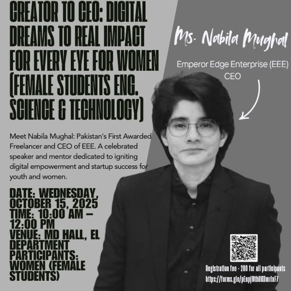 Department of Electrical Engineering, MUET in collaboration with IEEE PELS, PES, ComSoc, and WIE MUET Student Branch Chapters presents Creator to CEO: Turning…